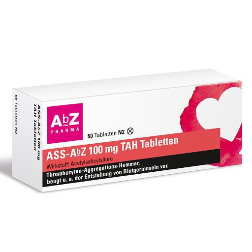 ASS-AbZ 100 mg TAH mit dem Wirkstoff Acetylsalicylsäure ist bewährt zur Einnahme nach einem Herzinfarkt, einem Schlaganfall oder operativen Eingriffen an den arteriellen Blutgefäßen. Die Bezeichnung „TAH“ steht für den Fachbegriff Thrombozytenaggregationshemmer, welcher die Verhinderung des Zusammenklumpens der Blutplättchen beschreibt. Umgangssprachlich wird hierunter ein „Blutverdünner“ verstanden. Kommt es in unserem Körper zum Zusammenklumpen von Blutplättchen, wird der Blutfluss gestoppt und die Sauerstoffzufuhr unterbrochen. ASS-AbZ 100 mg TAH hemmt das Verklumpen der Blutplättchen, wodurch das Risiko der Entstehung eines Blutgerinnsels reduziert wird. Nach Herzinfarkten und Schlaganfällen gehört ASS-AbZ 100 mg TAH durch diese Wirkung zur Standardtherapie zur Vorbeugung eines erneuten Auftretens. Auch bei Betroffenen mit instabiler Angina pectoris (Herzschmerzen) können Störungen des Herz-Kreislauf-Systems mit Acetylsalicylsäure in der niedrigen Dosierung behandelt werden. Ein weiteres Anwendungsgebiet ist die Einnahme nach operativen Eingriffen an arteriellen Blutgefäßen, um auch hier Blutgerinnsel zu umgehen. ASS AbZ 100 mg TAH eignet sich nicht zur Behandlung von Schmerzzuständen.