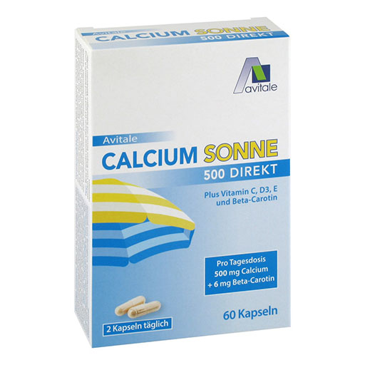 Avitale CALCIUM SONNE ist eine Nahrungsergänzung auf Basis von Calcium, Beta-Carotin sowie den Vitaminen C, D3 und E.