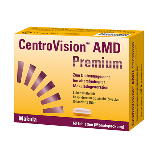 CentroVision® AMD Premium ist ein Lebensmittel für besondere medizinische Zwecke (bilanzierte Diät) zum Diätmanagement bei altersbedingter Makuladegeneration (AMD).