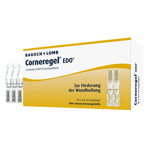 Anwendungsgebiete: Zur Behandlung nichtentzündlicher Hornhauterkrankungen des Auges (Keratopathien), z. B. Hornhautdystrophien (Ernäh- rungsstörungen), Hornhautdegenerationen (Rückbildungen), wiederkehrende Hornhauterosionen (Abschilferungen) und Hornhautläsionen (Verletzungen) bei Kontaktlinsenträgern; als zusätzliche Medikation zur Unterstützung des Heilungsverlaufs bei Hornhaut- und Bindehautschädigung, Verätzung und Verbrennung. Corneregel® EDO® ist nicht geeignet zur Heilung infektiöser Hornhautprozesse bakteriellen, viralen oder mykotischen Ursprungs, sondern nur als zusätzliche Medikation zu einer spezifischen Therapie dieser Hornhauterkrankungen.