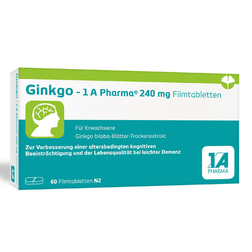 Gut zu wissen: Ginkgo – 1 A Pharma® 240 mg Filmtabletten gibt es auch niedriger dosiert als Ginkgo biloba – 1 A Pharma® 120 mg Filmtabletten.