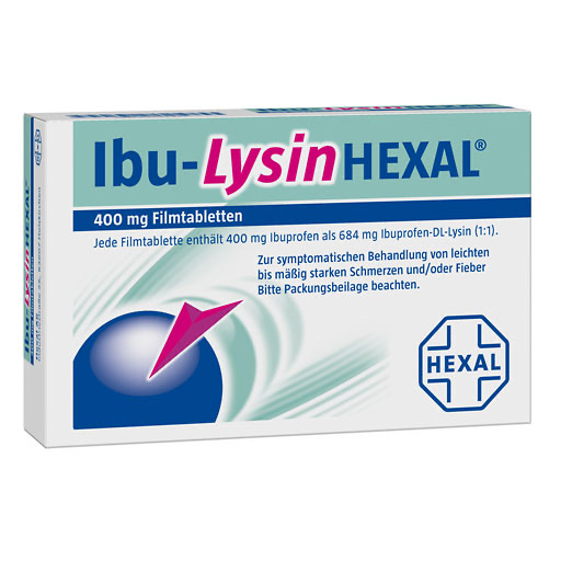 Ibu-LysinHEXAL® Filmtabletten enthalten den seit Jahrzehnten bewährten Wirkstoff Ibuprofen als sehr gut lösliches DL-Lysinsalz. Dieses kann besonders schnell vom Körper aufgenommen werden und beschleunigt so den Wirkeintritt. Ibuprofen ist gut erforscht und gehört zu den bekanntesten Arzneimitteln gegen Schmerzen, Entzündungen und Fieber. Der Wirkstoff hemmt die Bildung sogenannter Prostaglandine, die für die Weiterleitung von Entzündungs- und Schmerzsignalen im Körper verantwortlich sind. Leichte bis mäßig starke Schmerzen und Fieber können so langanhaltend bis zu 6 Stunden gelindert werden.