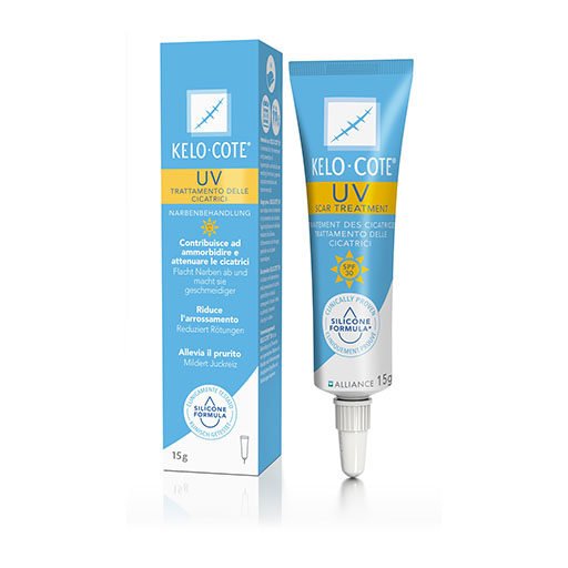 KELO-COTE® Narbengel UV mit Lichtschutzfaktor 30 wurde speziell entwickelt, um Narben vor den ungünstigen Auswirkungen der Sonne zu schützen. Der Sonnenschutz sorgt dafür, dass die Narbe vor UV-Strahlung geschützt wird und somit dunkle Pigmentierungen verhindert werden.