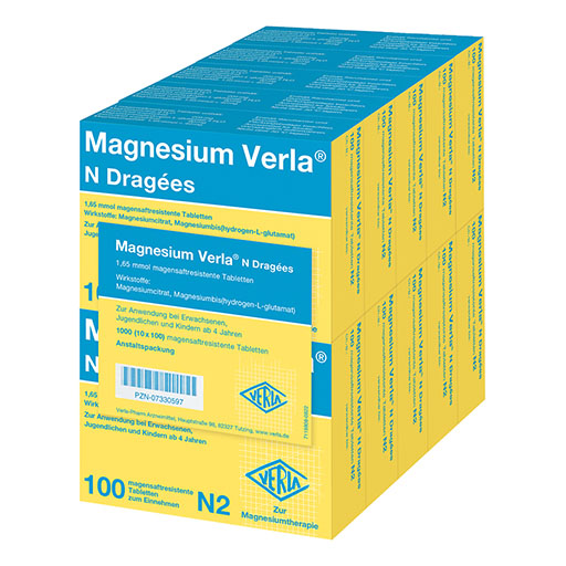 Seit mehr als 65 Jahren bewähren sich Magnesium Verla® N Dragées als Arzneimittel mit höchsten Qualitätsstandards in der Therapie von Magnesiummangelzuständen. Magnesium wird am besten vom Körper aufgenommen, wenn kleinere Mengen über den Tag verteilt eingenommen werden. Durch die niedrige Dosierung von Magnesium Verla® N Dragées sind sie individuell gut dosierbar und können ganz nach Bedarf zu verschiedenen Tageszeiten eingenommen werden. Sie haben einen leckeren Geschmack nach Vanille und lassen sich sehr leicht schlucken. Die magensaftresistenten Dragées sind außerdem gut verträglich. Zusätzlich werden in Magnesium Verla® N Dragées ausschließlich organische Magnesiumverbindungen für eine gute Aufnahme und Bioverfügbarkeit im Körper verwendet.
