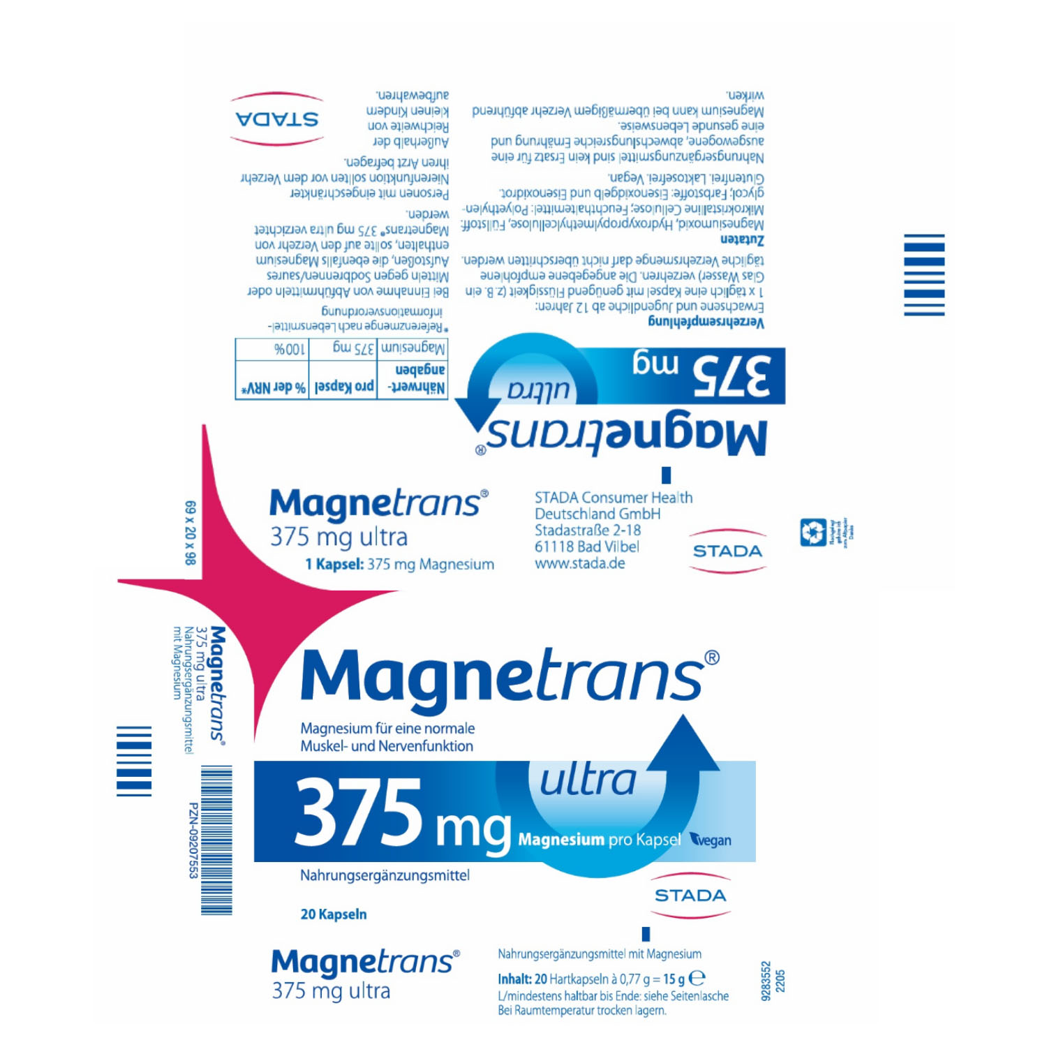 Unser Körper kann Magnesium nicht selbst herstellen. Deshalb ist eine ausreichende Zufuhr über die Nahrung notwendig. Diesen Bedarf können Sie durch Lebensmittel decken. Auch das Nahrungsergänzungsmittel Magnetrans® 375 mg ultra kann zu einer zusätzlichen Versorgung mit Magnesium beitragen. Magnetrans® ultra 375 mg Kapseln helfen Ihnen, mit nur einer Kapsel täglich 100 % des täglichen Magnesiumbedarfs1 zu decken und einen Beitrag dazu zu leisten, die körpereigenen Magnesiumdepots aufzufüllen. Magnetrans® 375 mg ultra Kapseln sind laktose- und glutenfrei und geeignet für Veganer.