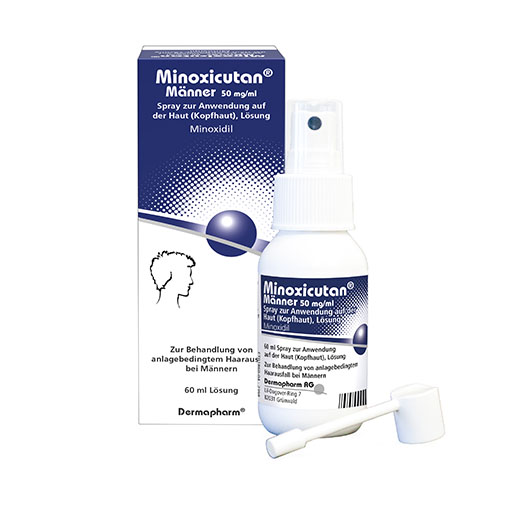 Minoxicutan® enthält Minoxidil. Der Wirkstoff fördert die Blut- und Nährstoffversorgung der Haarwurzeln.