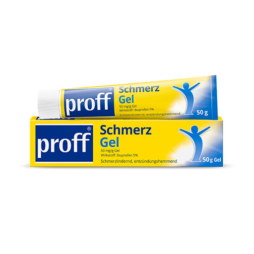 Anwendungsgebiete: Zur äußerlichen oder unterstützenden Behandlung bei Muskelrheumatismus, degenerativen Gelenkerkrankungen (Arthrosen), entzündlichen rheumatischen Erkrankungen der Gelenke und Wirbelsäule, Schwellungen und Entzündungen der gelenknahen Weichteile, Schultersteife, Kreuzschmerzen, Hexenschuss sowie bei Sport- und Unfallverletzungen wie Prellungen, Verstauchungen und Zerrungen. proff® Schmerzgel wird bei Erwachsenen und Jugendlichen ab 14 Jahren angewendet.