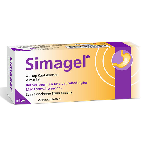 Anwendungsgebiete: Simagel wird angewendet zur symptomatischen Behandlung von Erkrankungen, bei denen die Magensäure gebunden werden soll, wie Sodbrennen und säurebedingte Magenbeschwerden und Magen- oder Zwölffingerdarmgeschwüre.
